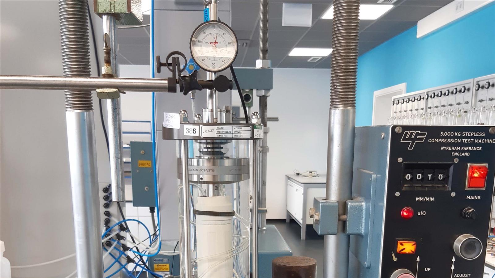 In unseren geotechnischen Laboren bestimmen wir die physikalischen und mechanischen Eigenschaften von Boden- und Felsproben sowie die Baustoff- und Materialeigenschaften von Dichtwandmassen oder mineralischen Dichtstoffen, Kunststofffolien und verbesserten Böden. Spezialversuche an gefrorenen Bodenproben führen wir in unserem Frostlabor durch – ein weltweit einzigartiger Service für unsere Kunden.