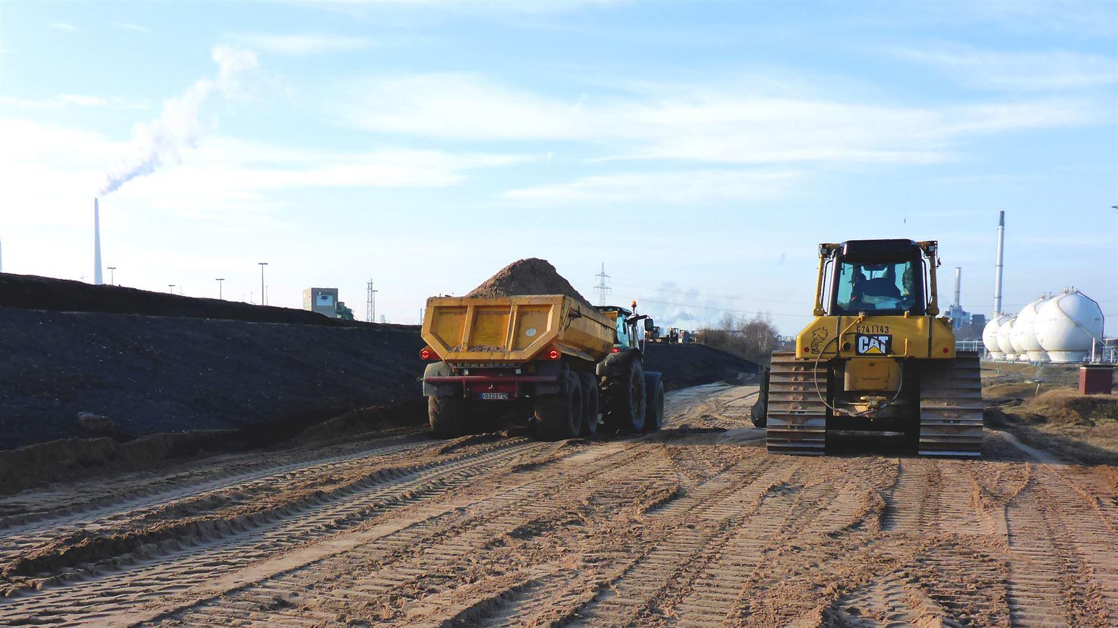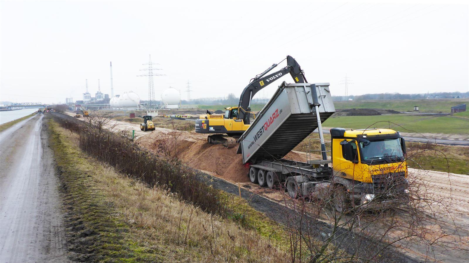 Auf insgesamt 14 m Höhe sollen die neuen, rückverlegten Deiche am Nord- und Südufer der Lippe anwachsen. Dazu müssen insgesamt etwa 3,2 Mio. m³ Bodenmasse bewegt werden - grob geschätzt könnte man damit einen Güterzug von 500 km Länge füllen. Neben der logistischen Mammutaufgabe kommen weitere Herausforderungen wie das enge Zeitfenster und hohe Sicherheits- und Qualitätsauflagen durch den sensiblen Naturraum und einen angrenzenden Chemiepark hinzu.