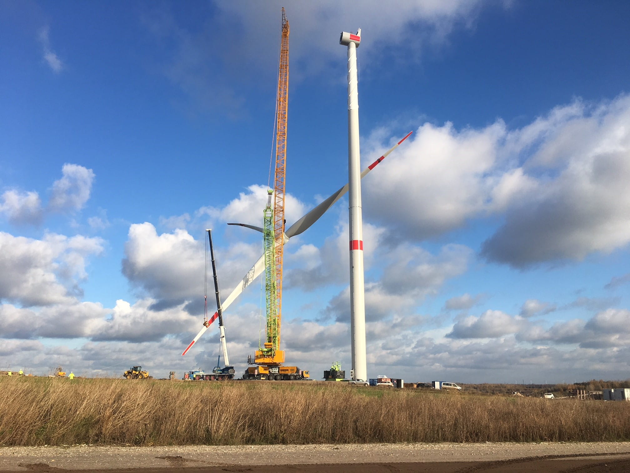 CDM Smith begleitete das zukunftsweisende Vorhaben mit geotechnischen Planungs- und Bauüberwachungsleistungen. In kurzer Zeit erarbeiteten wir eine wirtschaftliche Lösung zur Verbesserung des Kippenbodens, auf dem die Anlagen stehen. Hierzu gehörten auch die Stellplätze der Kräne, deren Präzisionsarbeit bei der Montage der 115 m hohen Anlagen nur maximal zwei Zentimeter Setzung zuließ. Mit Hilfe volldynamischer Berechnungen an dreidimensionalen Finite-Elemente-Modellen optimierten wir die komplexe Gründung. Außerdem planten wir die Untergrundverbesserung und die Erdbauarbeiten, unterstützten die GETEC green energy AG bei der Vergabe und überwachten und sicherten die Qualität der Ausführung vor Ort. Damit leisteten wir einen wichtigen Beitrag für das wegweisende Projekt.