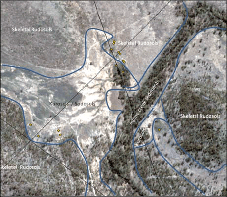 - Filed soil surveys, specifically targeting of changes in soil colour, sodicity and salinity associated with the wetlands, providing indications of waterlogging, evaporation of shallow water tables and surface water.